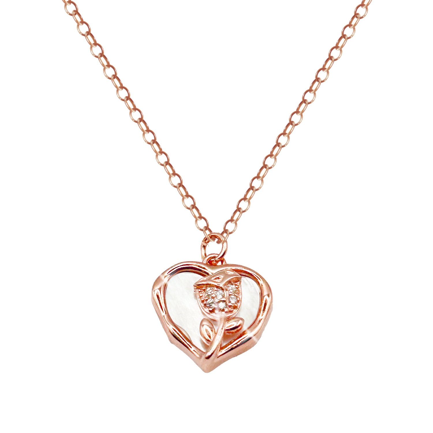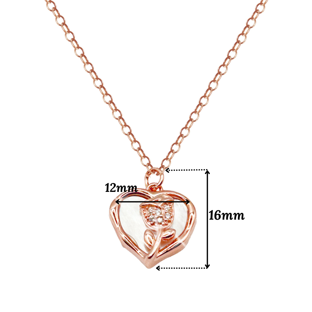 925 sterling silver heart with flower pendant with chain